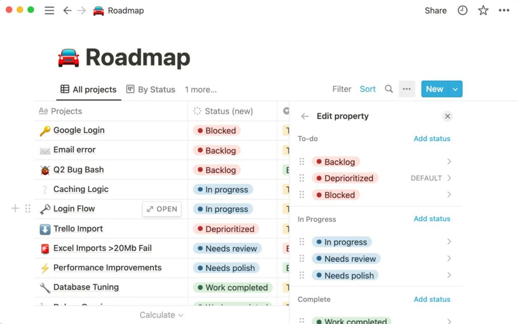 Chaque entrée dans une base de données est une page avec des propriétés personnalisables : texte, nombre, date, statut ou collaborateurs. Les vues disponibles incluent :